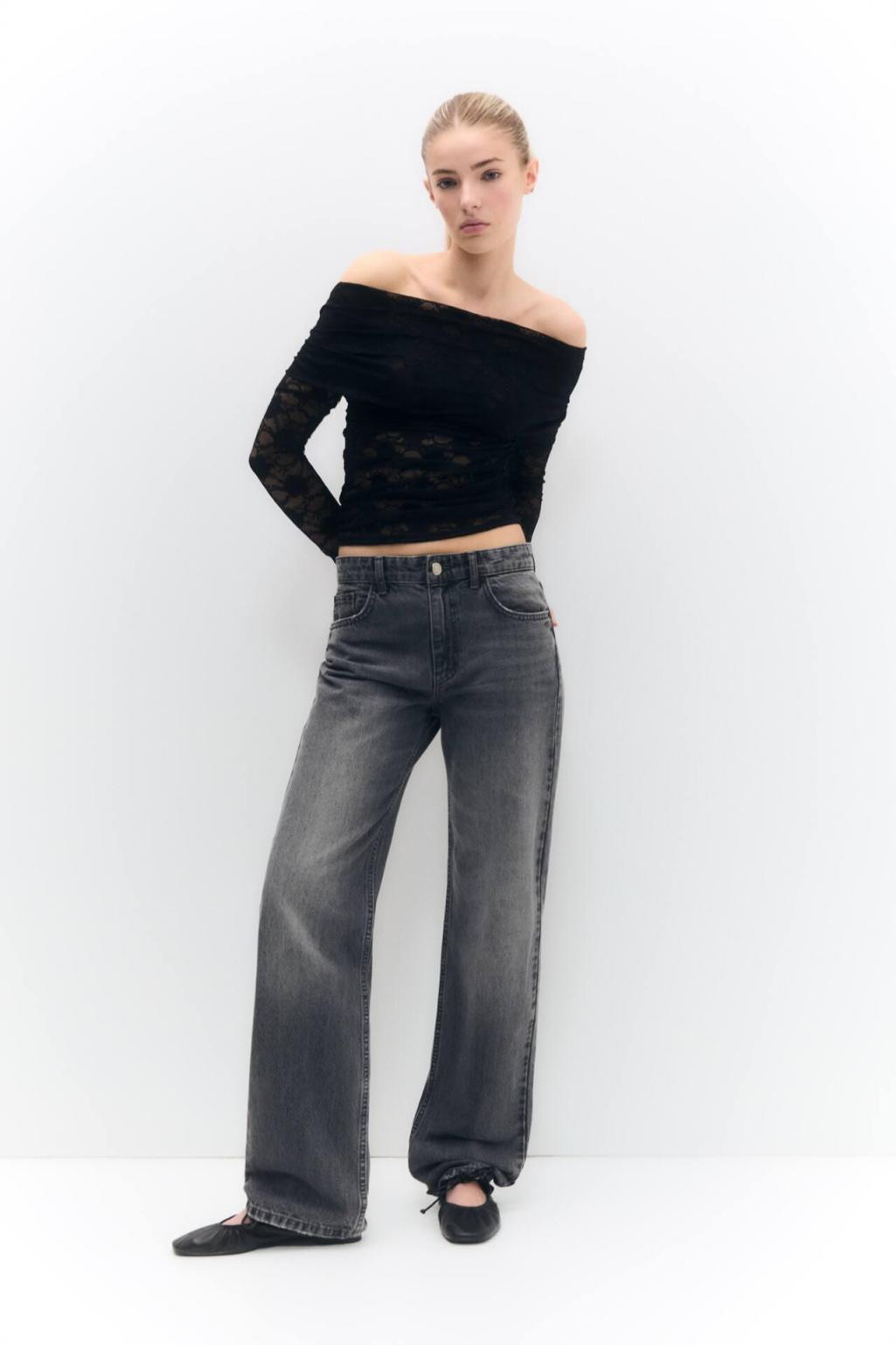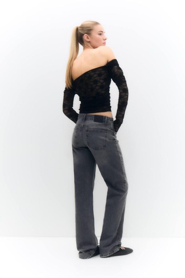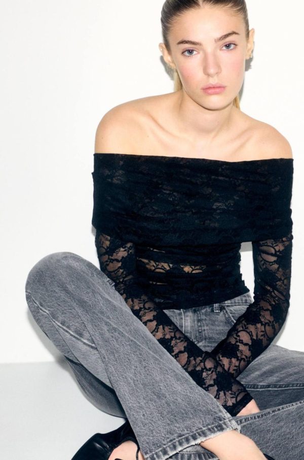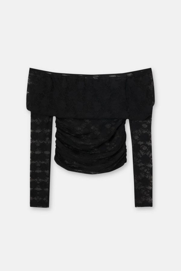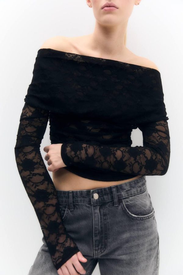 Off-The-Shoulder T-Shirt With Long Sleeves And Lace Detail. Composición