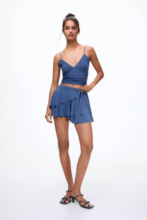 Ruffled Mini Skirt With Bow Detail. Made Of Stretch Fabric. Total Look Composición