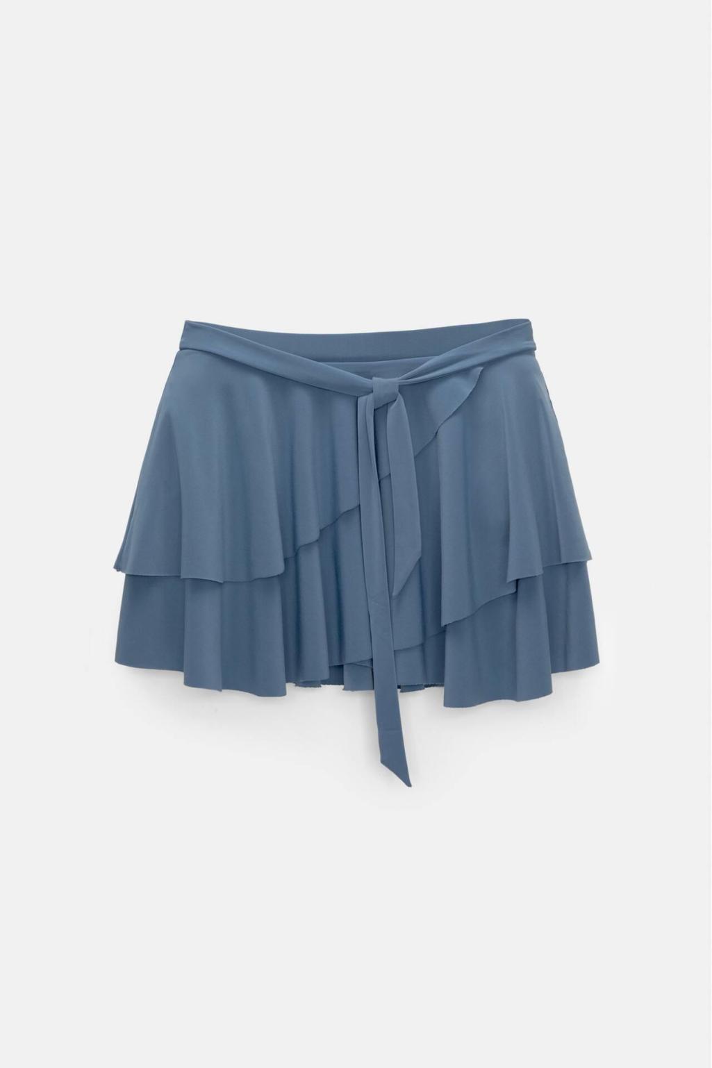 Ruffled Mini Skirt With Bow Detail. Made Of Stretch Fabric.