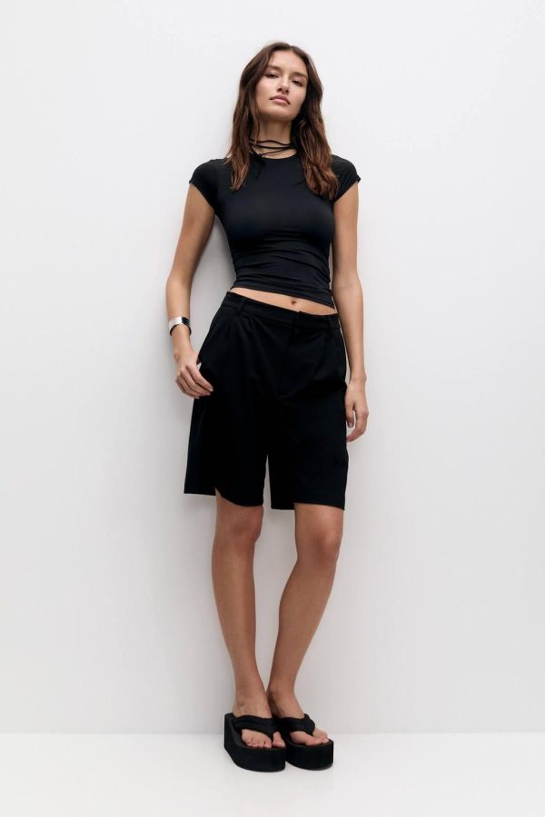 Women Short Sleeve Polyamide T-Shirt Black | Basic